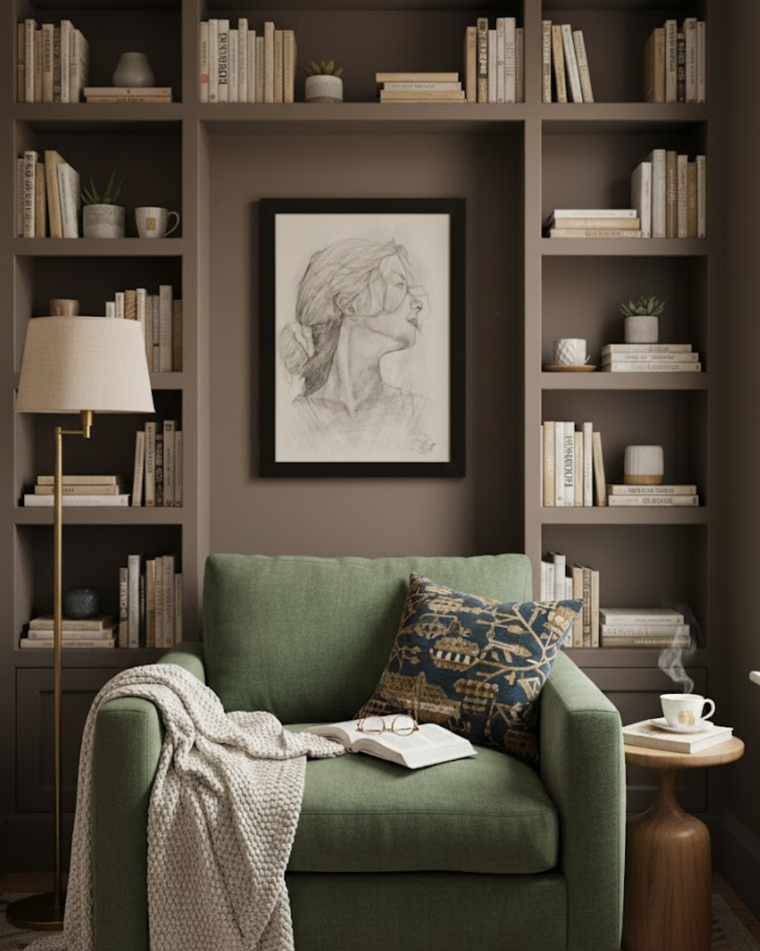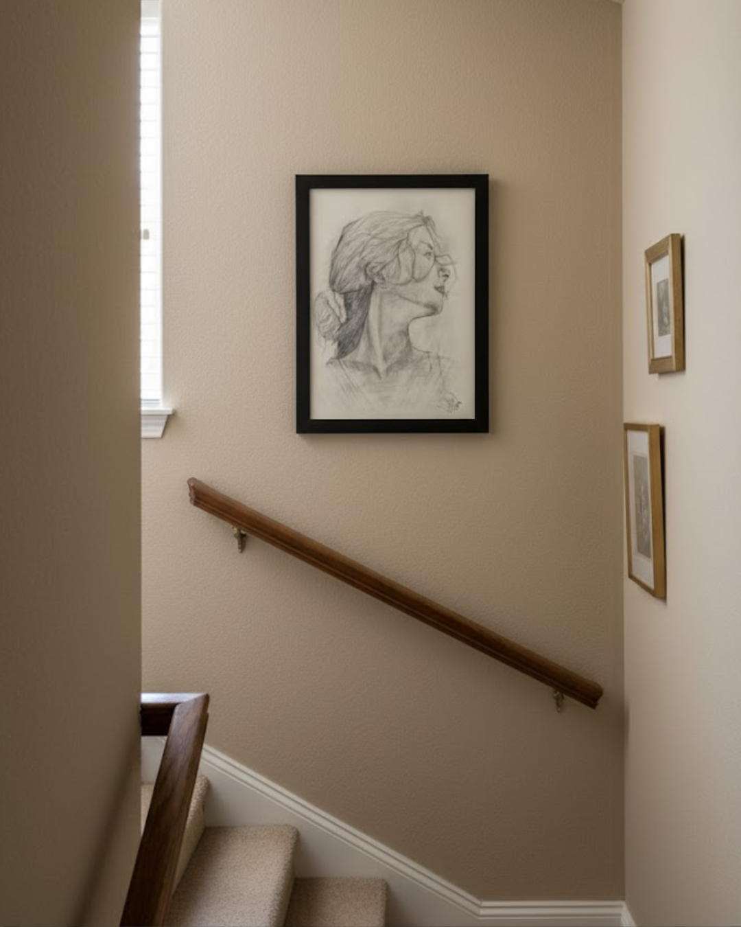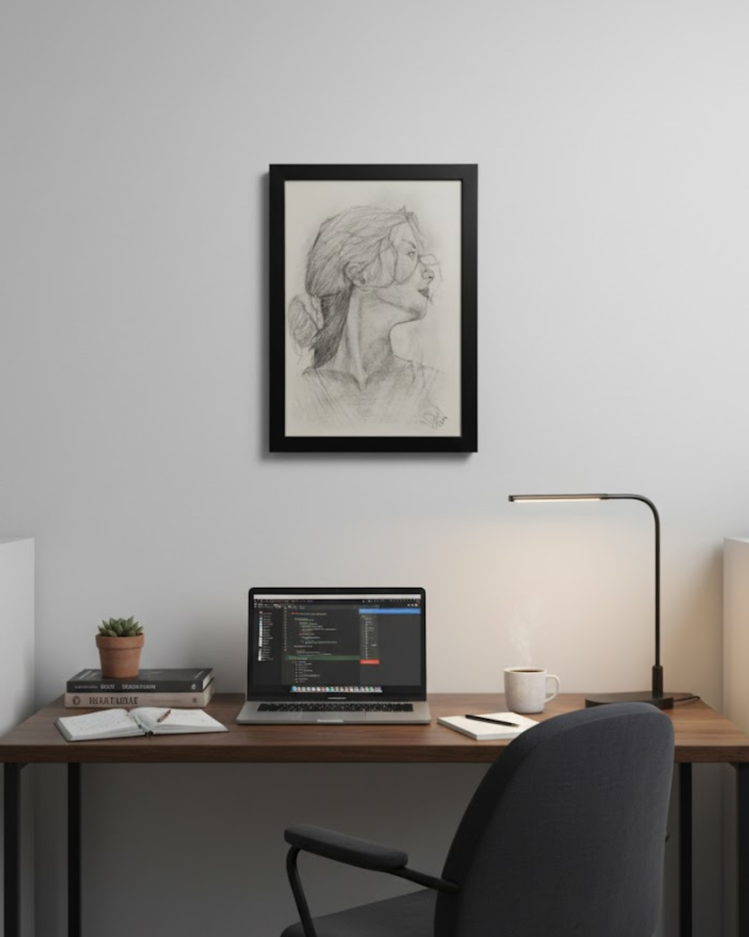 A delicate pencil sketch of a woman in profile, rendered with soft lines and subtle shading. This serene artwork brings calm and elegance to any space—ideal for studies, bedrooms, or galleries seeking understated sophistication.